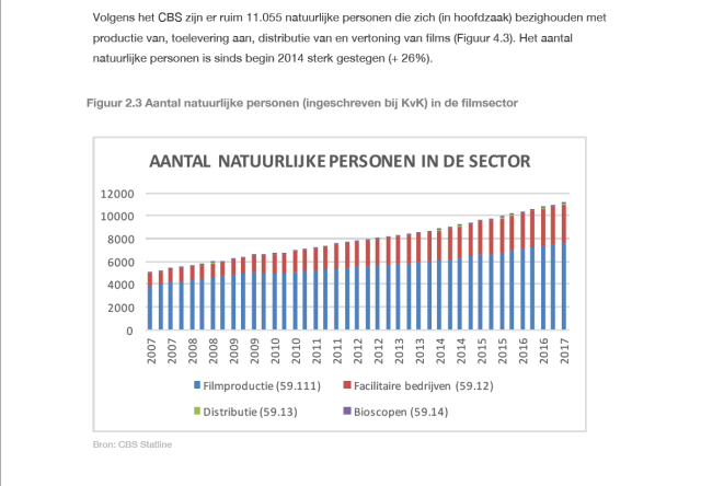 Tal van filmprofessionals zijn niet aangesloten bij een belangenvereniging. Wanneer het aantal (179) respondenten vergeleken wordt met het aantal mensen (11.055) dat werkzaam is in de filmsector (zie CBS tabellen in rapport ) dan kun je niet met goed fatsoen zeggen dat dit onderzoek representatief is.