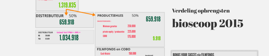 We hebben wel inzicht in wat er met bioscoopexploitatie verdiend wordt en weten ook hoe dit verdeeld wordt. Dit is met name voor producenten interessant, maar ook voor filmmakers die in hun contract met de producent een winstpercentage hebben afgesproken.