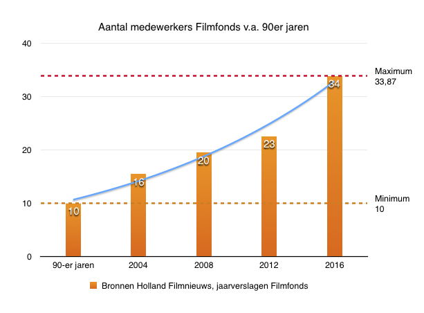 Het aantal werknemers bij het fonds stijgt. Het is in 2016 verdrievoudigd vergeleken bij het aantal dat er in 1999 werkte.2011 – Alle fondsbijdragen zullen voortaan pro rato aan het Filmfonds terugbetaald worden, naar financieringsaandeel in dezelfde positie. Om de producenten toch nog te laten profiteren van de opbrengsten van hun film komt het fonds met het ministerie van OCW overeen dat per 1 januari 2011 de terugbetaalde middelen uit de exploitatie van films door de producent ingezet mogen worden voor nieuwe filmproducties. De zogenaamde revolverende middelen doen hun intrede.