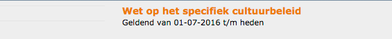 Sinds 1993 geldt de Wet op het Specifiek Cultuurbeleid. Deze wet legt vast wat de betrokkenheid is van de rijksoverheid bij cultuur.