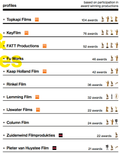 De rangorde is inmiddels verwijderd op de site van de filmcommission. Er staan nu alfabetische lijsten op de site. Deze ogen ook wat vreemd waardoor je je afvraagt of er überhaupt wel een database gepubliceerd moet worden die in ontwikkeling is.