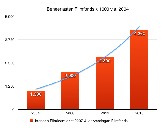 De beheerslasten van het Filmfonds zijn de afgelopen jaren ruim verviervoudigd; van 1 miljoen in 2004 naar 4.26 miljoen in 2018. Deels komt dat door de cash rebateregeling, maar zoals eerder gezegd is ook de regeldruk toegenomen.