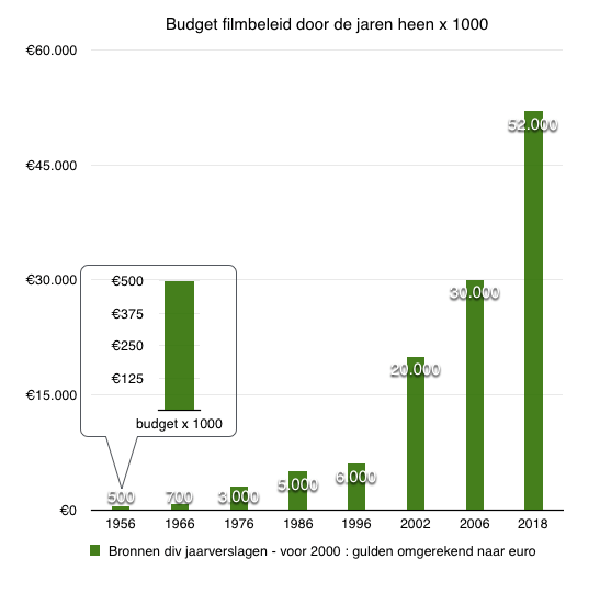 Om een beeld te krijgen van hoe filmbeleid in het verleden uitgevoerd werd en de kosten hebben we gebruik gemaakt van site van de bioscoopbranche waar jaarverslagen en andere publicaties op staan.