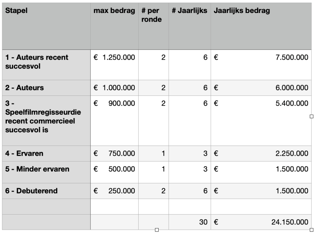 - Minder ervaren speelfilmregisseurs – max 450.000